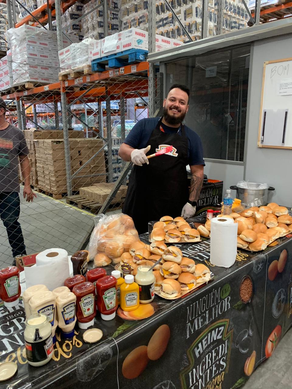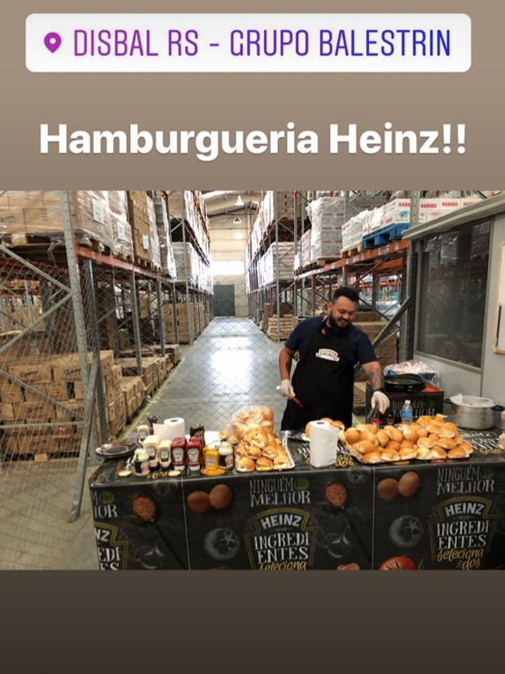 Além da apresentação de lançamento e treinamento, todos puderam conhecer os produtos degustando-os juntamente com hambúrgueres feitos na hora pelo promotor Mateus que veio da Disbal de Joaçaba especialmente para o evento. Nossa hamburgueria improvisada foi um sucesso, os novos produtos foram super aprovados. No final do evento, todos que participaram ganharam um kit com os principais produtos Heinz.